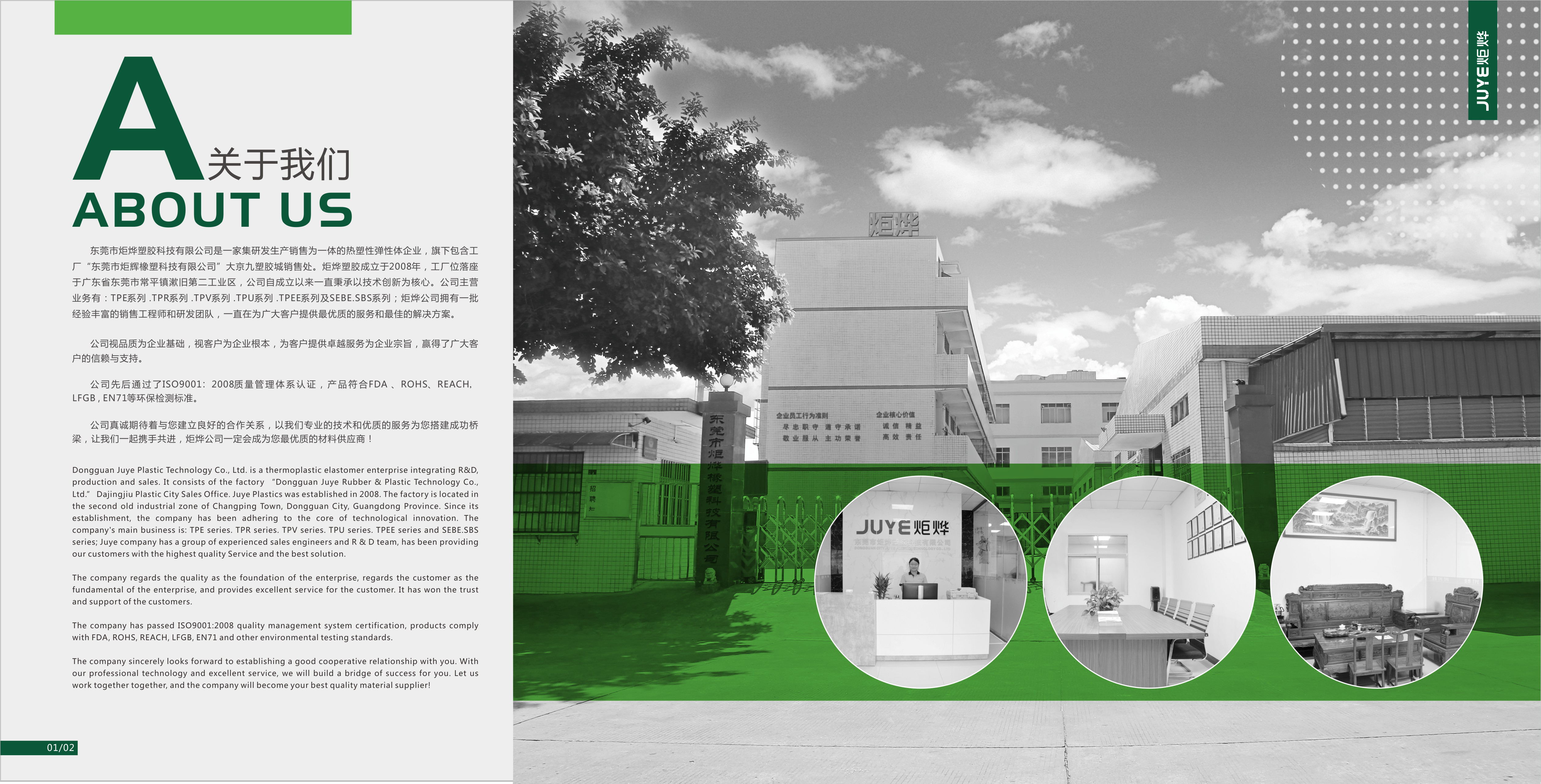 东莞市炬烨塑胶科技有限公司(以下简称:炬烨)是一家集研发生产销售为一体的热塑性弹性体企业,旗下包含工厂“东莞市炬辉橡塑科技有限公司”大京九塑胶城销售处。炬烨塑胶成立于2008年,工厂位落座于广东省东莞